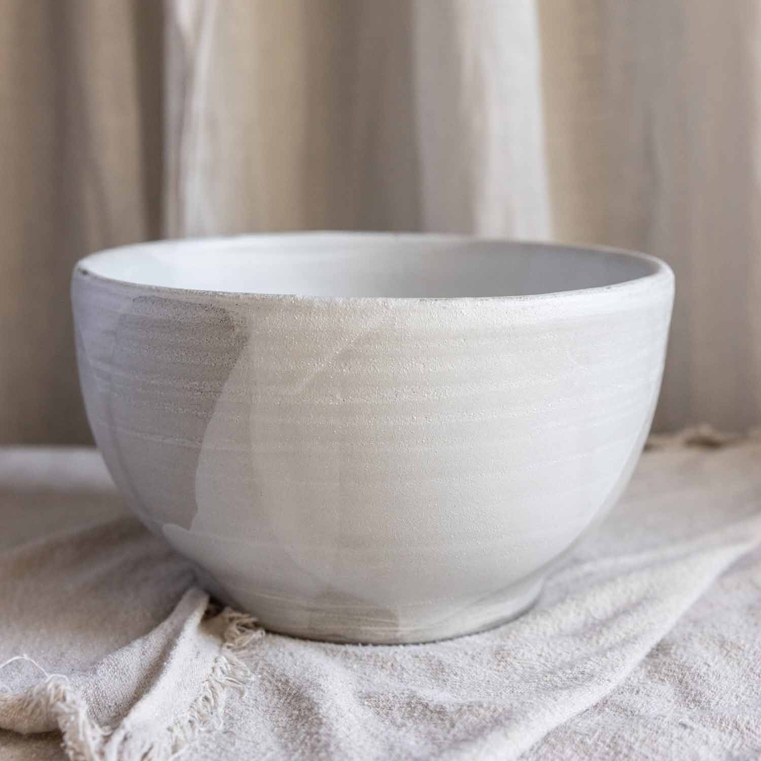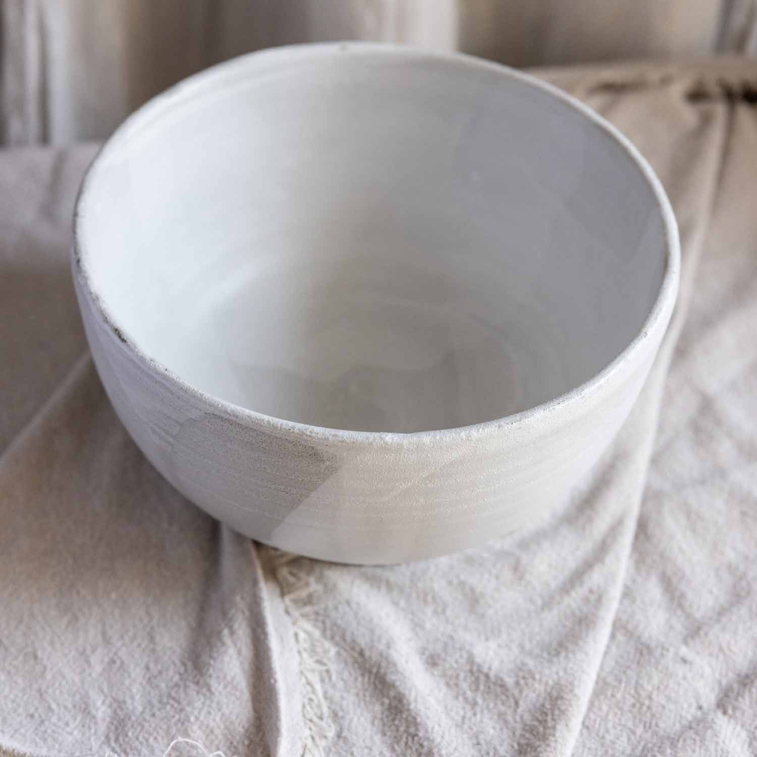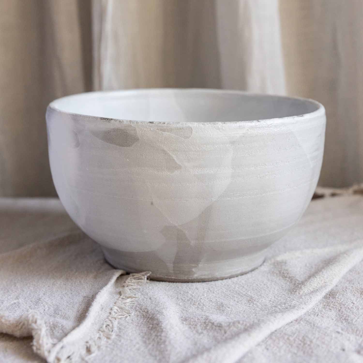 Diese handgetöpferte Keramik-Schüssel in sanften weiß-Verläufen machen deinen Tisch zu einer Showbühne.