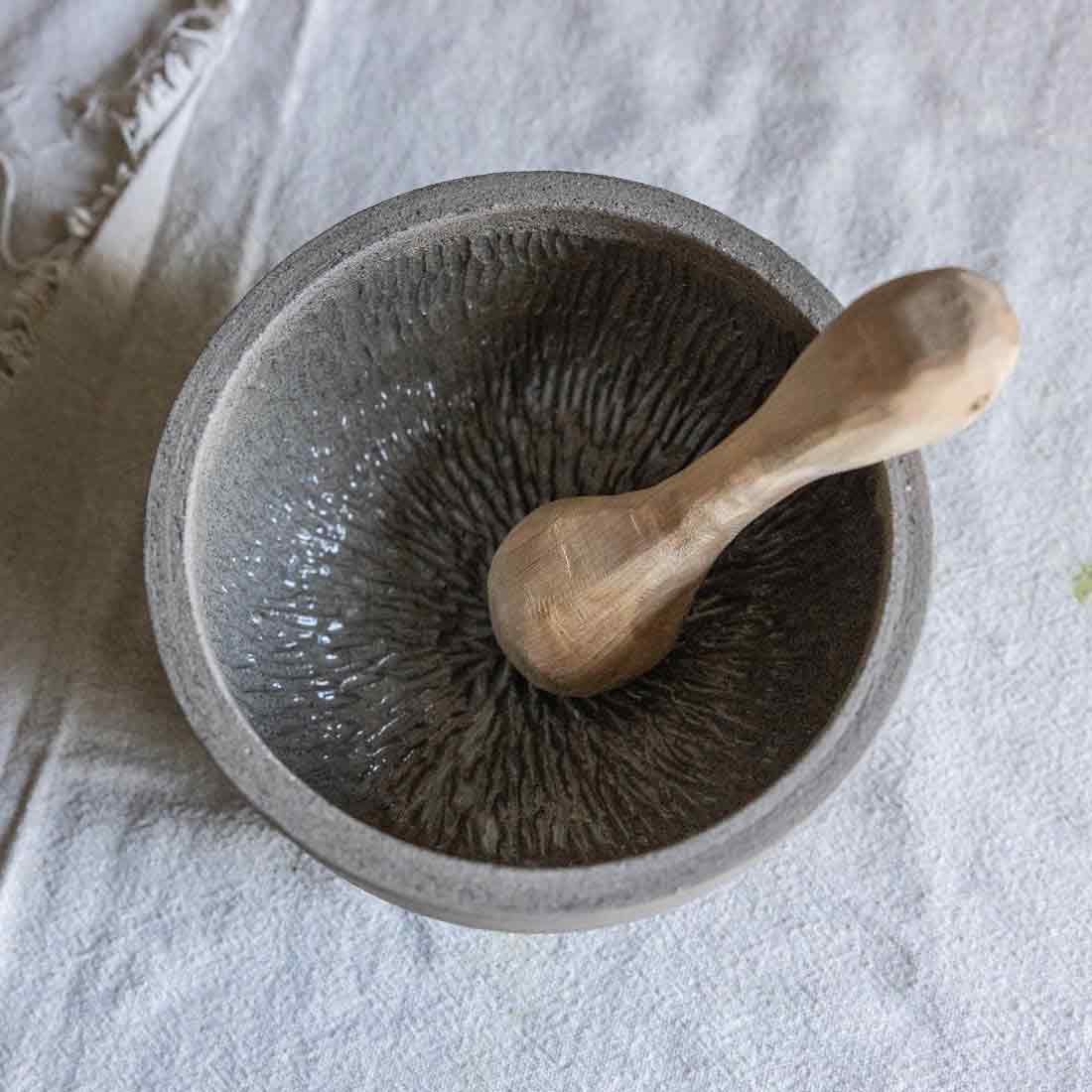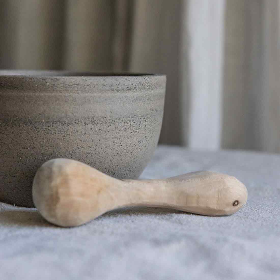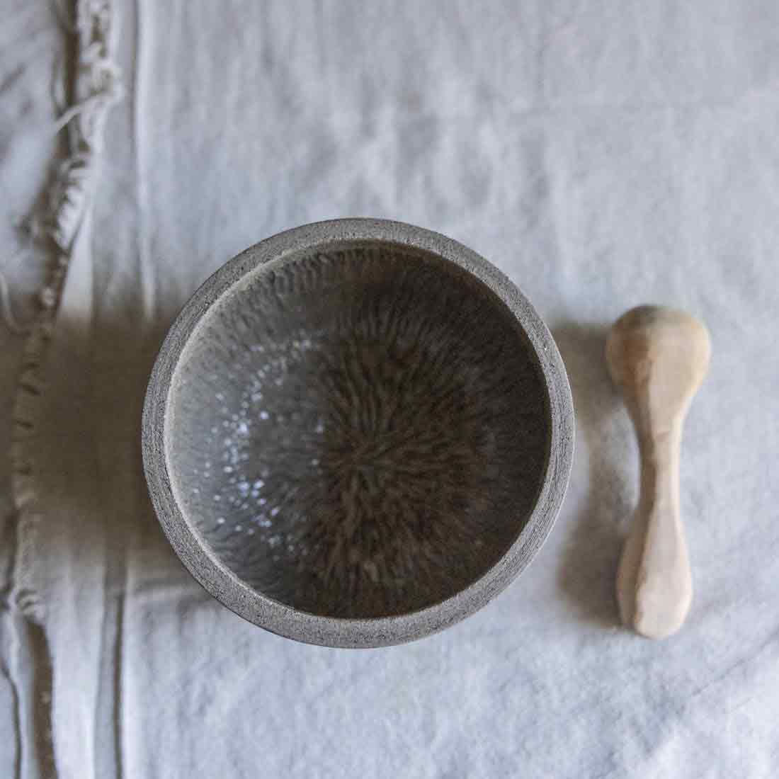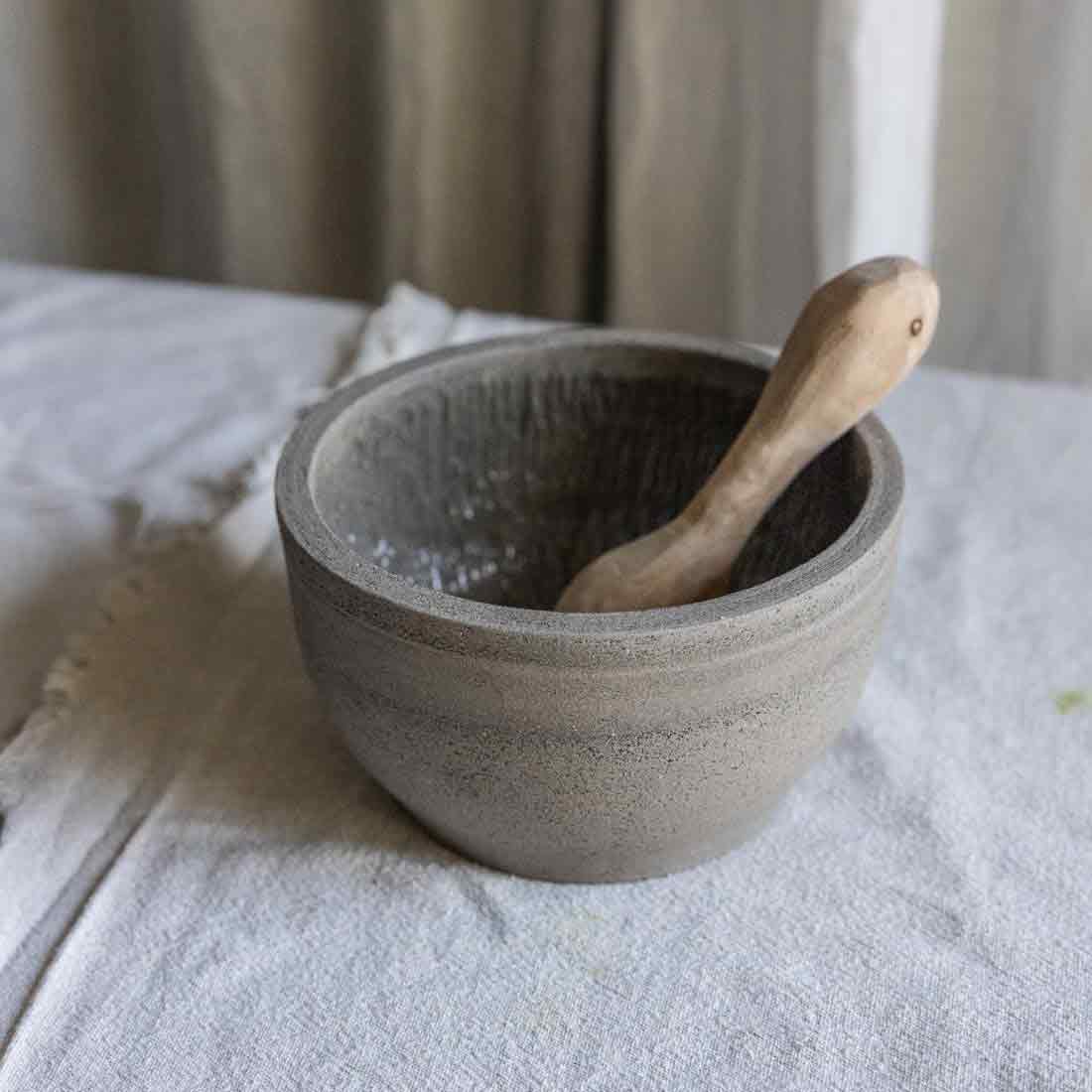 Ganz neu in der Mörser-Kollektion, der unaufgeregte sanfttönige Mörser aus grau-braunem Ton.