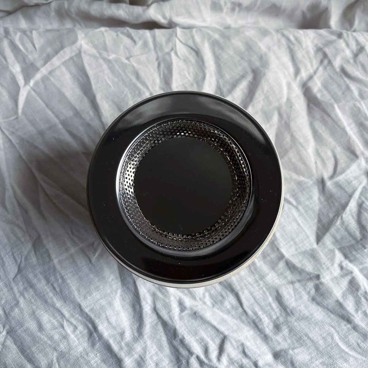 Das mitgelieferte Edelstahlplättchen dient dazu, dass beim Räuchern mit Harzen das Sieb nicht verklebt.